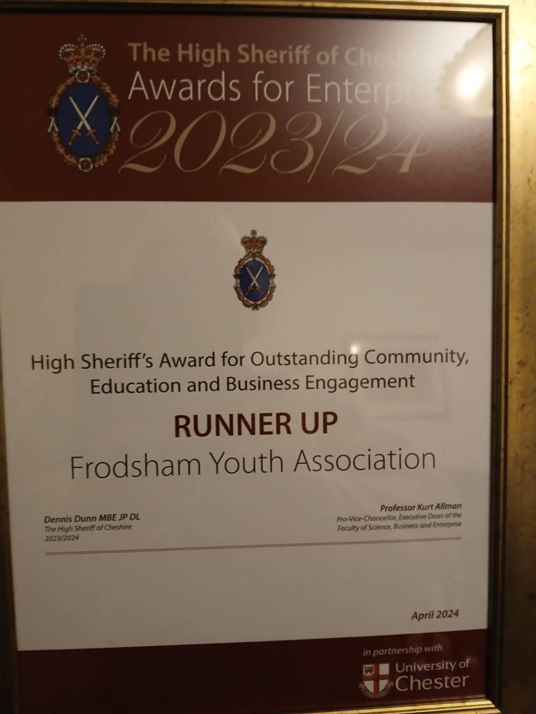 Frodsham Youth Club was awarded runner up in the Outstanding Community Engagement category. Awarded to the charity or business that has made a significant difference to the community they serve. This could relate to the development or utilisation of new products or technology in order to reach the most vulnerable in our communities. It could also relate to new and innovative ways of developing strong relationships and a sense of community with stakeholders.
