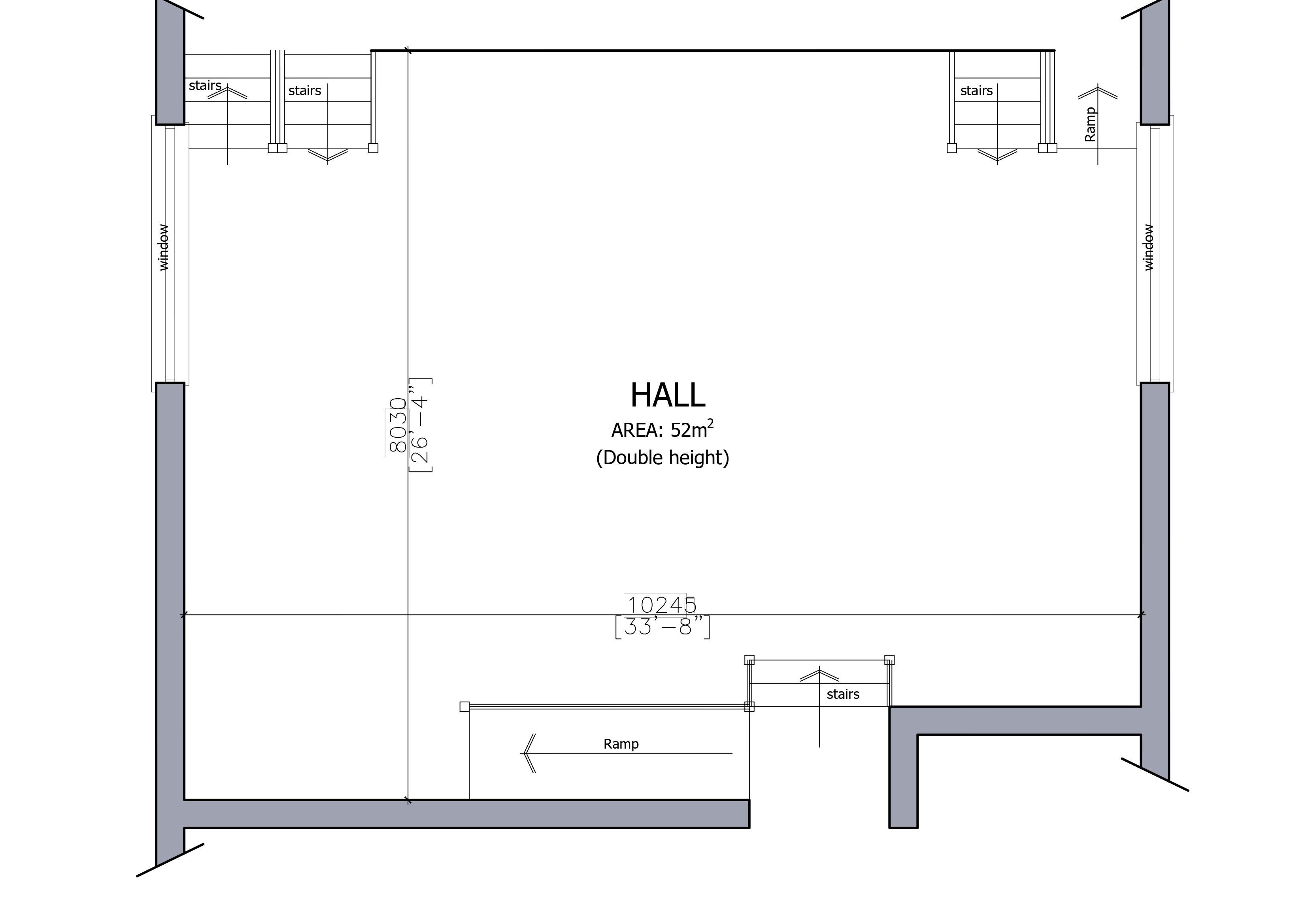 The main hall is a double height space measuring 8x10m (26x33ft) with a floor area of over 52msq. This is ideal for parties, classes and activities that require a lot of space.